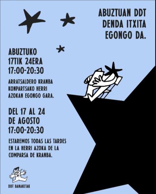 DDT denda Thursday, Sep 04, 05:00 PM → Friday, Jul 31, 2026 Friday 31 July 20:30 DDT Martzana kaia 5, Bilbao kontrakulturadiyautogestioa