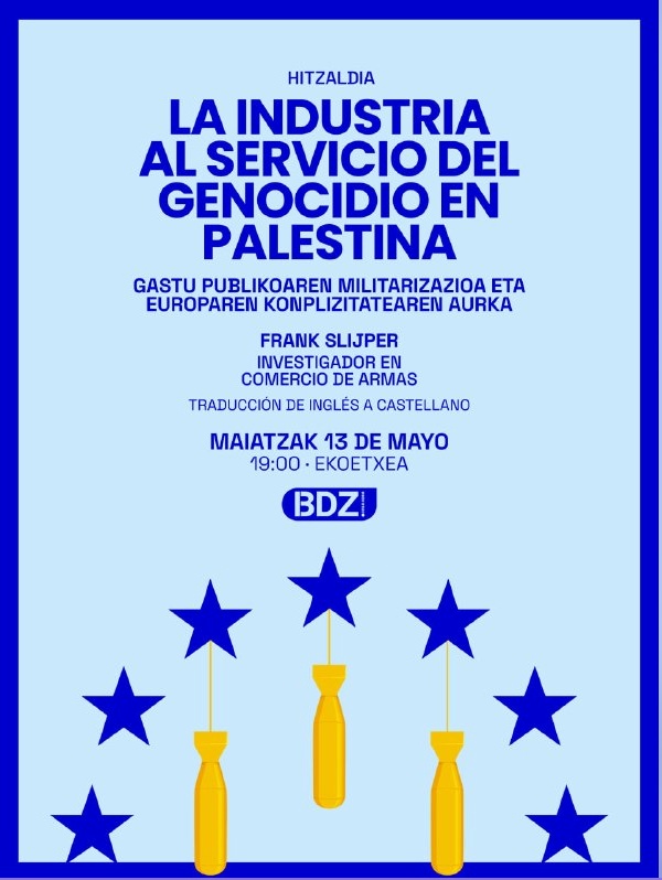 Hitzaldia antolatu dugu Frank Slijper arma-merkataritza ikertzailearekin, 2024an Herbehereek F-35 ehiza-hegazkinaren piezak Israelera bidaltzea geldiaraztea lortu zuen salaketan parte hartu zuena.