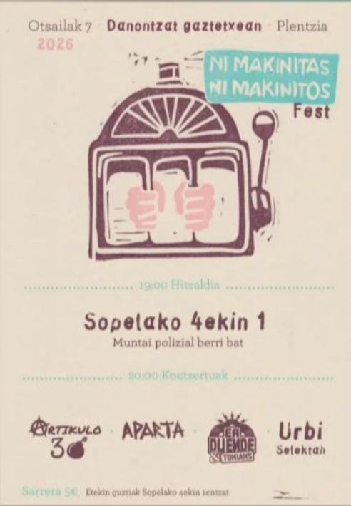 NI MAKINITAS, NI MAKINITOS FEST: "Sopelako 4ekin1" Hitzaldia + "Artikulo 30, Aparta, Er Duende & Tokians, Urbi Selektah" Kontzertuak
