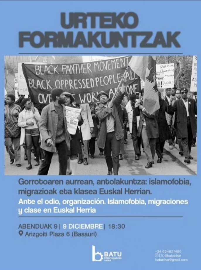 URTEKO FORMAKUNTZAK: "Gorrotoaren aurrean, antolakuntza: islamofobia, migrazioak eta klasea Euskal Herrian"