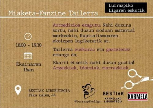 FAKA: FANZINE AUTOEDIZIOA ETA KONTRAKULTURA AZOKA Friday, Dec 12, 06:00 PM-09:30 PM Friday 12 December 21:30 Karmela Fika kalea 44 -Bilbo autogestioaazokamusikapintxadasolasaldiasorkuntza